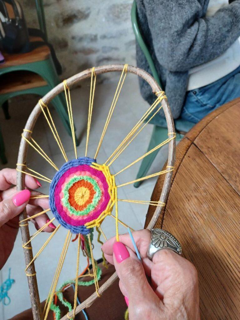Tisser c’est créer une trame, une structure, une architecture qui permet d’accueillir le vivant. Les textures, les couleurs nourrissent nos yeux, notre toucher, éveille en nous la douceur, la tendresse, le féminin. Le geste rythmique qu’il nécessite nous apporte aussi de multiples bienfaits.